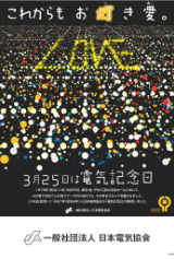 動力への利用は電灯よりも少し遅れて、明治23年(1890年)11月、東京・浅草の凌雲閣(12階)のエレベーター運転用として、7馬力電動機に供給されたのが初めてです。明治28年2月には、京都伏見線で電気鉄道が初めて営業運転を行いました。 このように、3月25日は日本の電気事業にとって忘れることのできない日です。 これを記念するため、昭和2年に開催された日本電気協会の総会において、3月25日を「電気記念日」と定めました。以来、翌年の昭和3年から毎年3月25日頃に全国各地でさまざまな記念行事が開催されています。